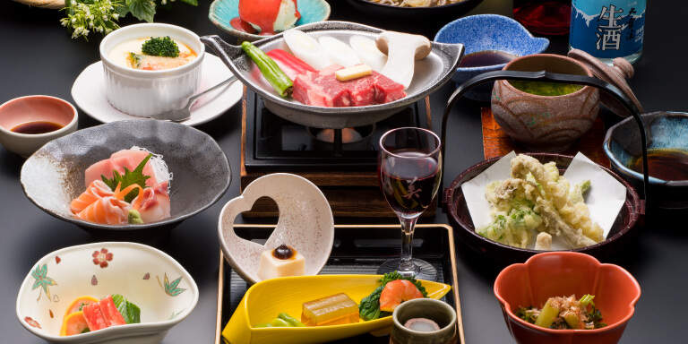 源泉掛け流しの温泉と、地元食材を活かした旬会席が自慢です。